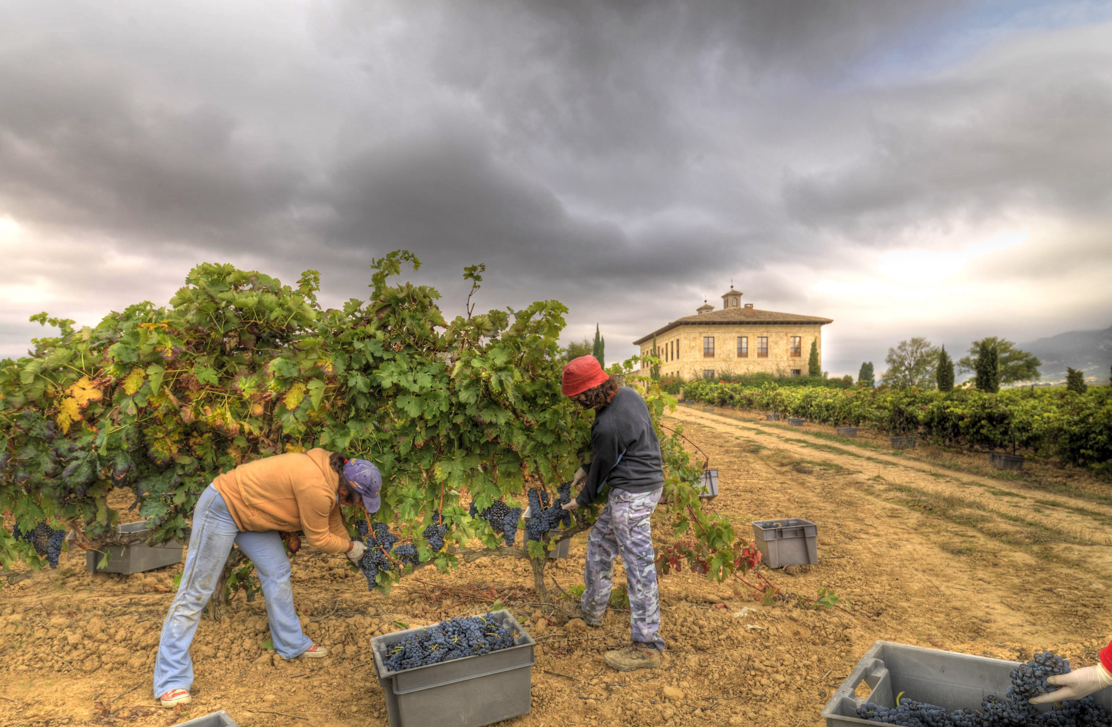 LA VENDIMIA: Durante todos estos días, nuestros técnicos han estado visitando los viñedos recogiendo muestras de las distintas parcelas. Una vez alcanzado el estado óptimo de maduración, los equipos de vendimiadores han iniciado su labor. En nuestra bodega, la recolección siempre se realiza manualmente con ayuda de unas tijeras. Los racimos son recogidos cuidadosamente en cajas de 25 kilos para mejorar la sanidad y evitar oxidaciones. Encargados de bodega controlan el corte de la uva, tirando al suelo aquellos racimos que no tienen el suficiente grado de maduración o estñan dañados.- TRANSPORTE A BODEGA: Para la calidad, resulta fundamental el tiempo que pasa desde que se corta la uva hasta que llega a bodega. En Torre de Oña, pequeños remolques se encargan de trasladar las cajas hasta unas plataformas refrigeradas, donde permanecerán durante la noche anterior a su entrada a bodega. Es el paso previo antes de que, en los depósitos, se realice la llamada maceración prefermentativa en frío, una técnica que nos permite la extracción máxima de los aromas y sabores primarios de las variedades Tempranillo y Mazuelo.